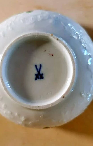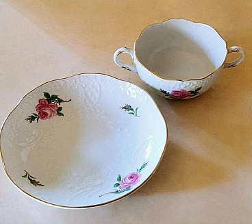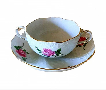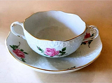Set of 12 Meissen Porcelain soup cups with roses and relief decoration, 1940s