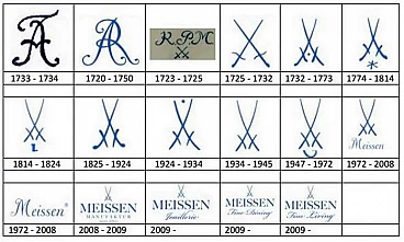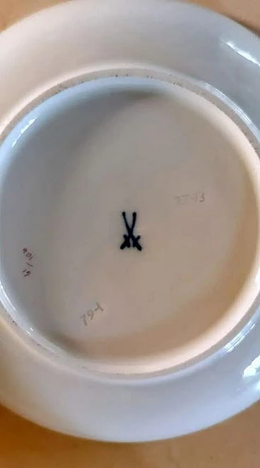 Rare Meissen porcelain soup service in Biedermeier style; the set consists of 12 cups with two handles and saucer; the various pieces are made of fine white hard porcelain painted by hand with the decoration "Pink Roses" enriched on all objects by sumptuous decorations in relief not painted. Unlike the simple and quite common "Pink Roses", this model is very rare, prestigious and sought after, and therefore also more expensive; in fact, the objects with this relief decoration, much more particular and detailed than the others, have been fired three times, while those with only the "Pink Roses" decoration only twice. Moreover, the execution of this ornamental motif with delicate and graceful flowers was entrusted only to the most experienced and skilled painters, those in possession of the prestigious diploma from the 'Meissen School of Drawing' established in 1764. The edges of the cups and saucers are scalloped and finished in pure gold, as are the handles. All the pieces bear the original Meissen mark (two crossed swords) and from the enclosed list it can be stated with certainty that the service was produced between 1934 and 1944. In addition, the model is hand-written on the objects (61/106), which makes them even more valuable and appreciated as they retain all the characteristics of the author's handwriting. Meissen porcelain was created in the Albrechtsburg castle in Meissen, a small town in Saxony near Dresden, in 1710, at the behest of Augustus the Strong (1670-1733), Elector of Saxony and King of Poland, who wanted to start production after the studies and experiments of his alchemist Bottger. Bottger discovered the formula for porcelain, in fact at that time, only the Chinese and Japanese had the recipe to create this wonderful material; Meissen was, therefore, the first porcelain produced in Europe. Bottger never revealed his formula to anyone, only a certain phase was known to the workers; we do not know, even today, in which proportions the different components are mixed; this is the great secret that has allowed the famous brand to be considered the best in the world, Meissen porcelain is given the nickname of "white gold". Over the years, Meissen has perfected its hard-fired products with high temperature firing during glazing. Meissen's porcelain designs have been copied by many other manufacturers around the world such as Royal Copenhagen, Dresden, Herend and many others, but Meissen's porcelain enamel retains its quality over time and is superior to all. That is why even old Meissen porcelain looks so new and keeps its excellent condition, while other porcelain grains and ages, losing its brightness and colour. The perfect and accurate painting on Meissen porcelain far exceeds any other porcelain in the world. Our Meissen bouillon service sums up all these precious characteristics of rarity and enchanting beauty. All pieces are in excellent condition.