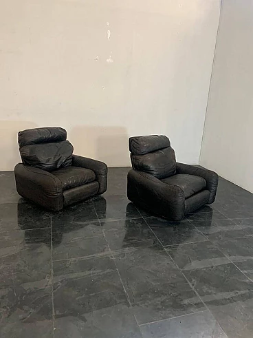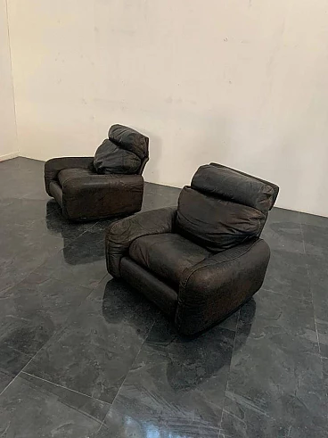 Pair of leather armchairs by Arrigo Arrigoni for Busnelli, 80s