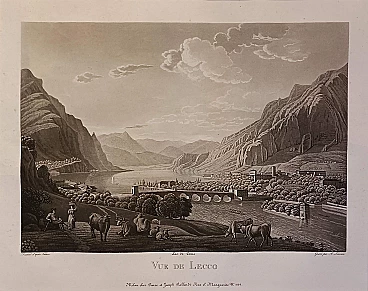 Antonio Lanzani, Vue de Lecco, aquatint, 19th century