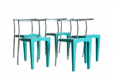 5 Metal and plastic chairs by Philippe Starck for Kartell, 1980s. Aquamarine colour, the attribution mark is present.