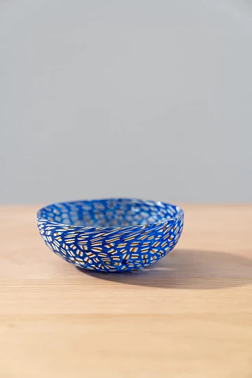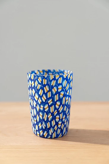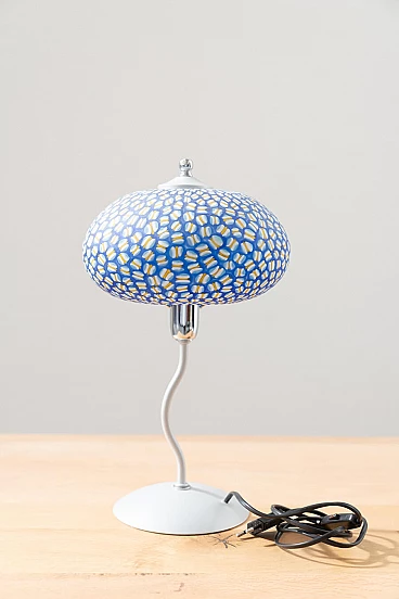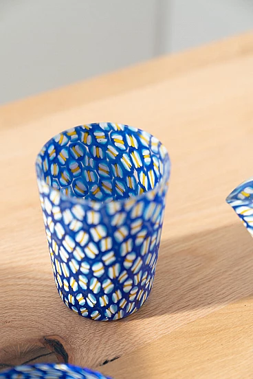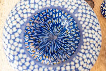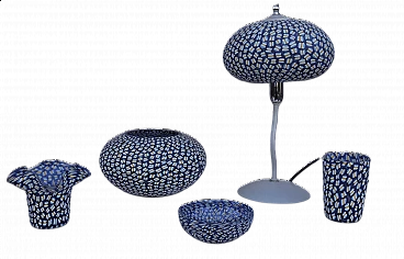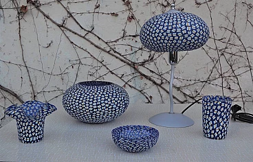 Glasses, bowls and table lamp in hand-painted Murano glass, 90s