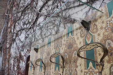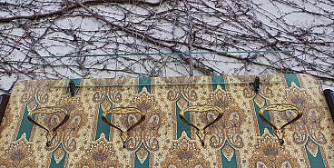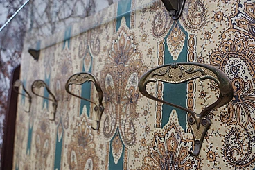 Mahogany coat stand by Paolo Buffa with decorated fabric, 1950s