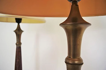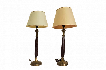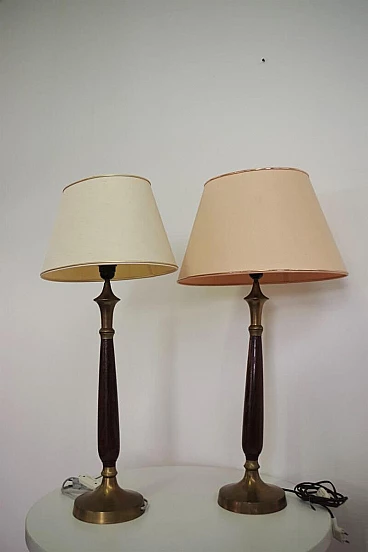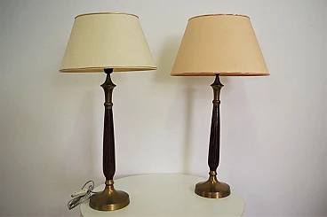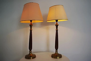 Pair of Hats lamps in mahogany, brass and cotton, 1950s