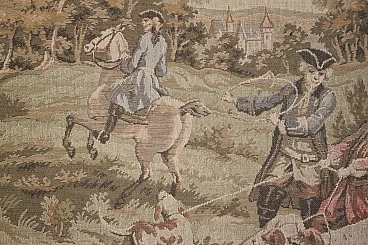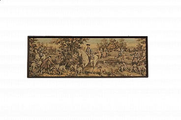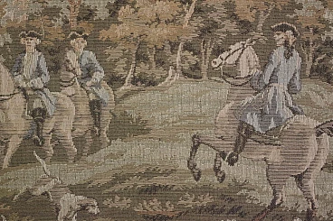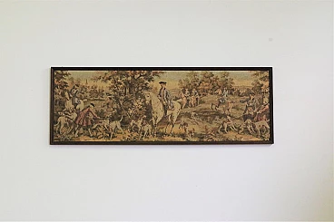 Wall tapestry with wooden frame. Light wear due to age and use.