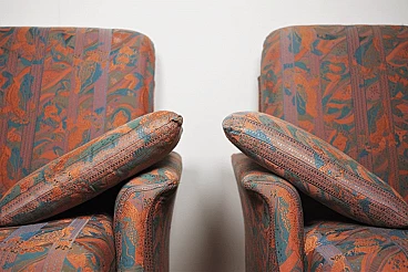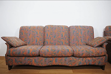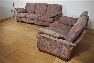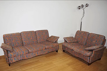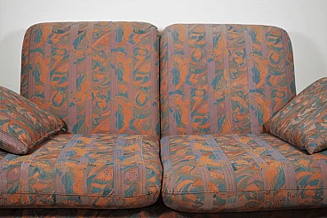 Pair of coloured sofas with wooden frame, 1970s