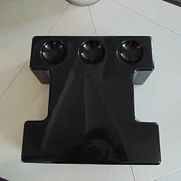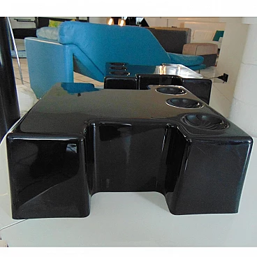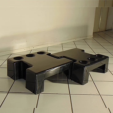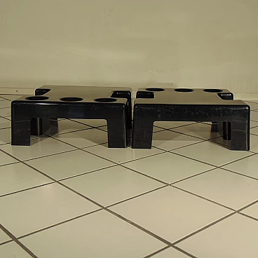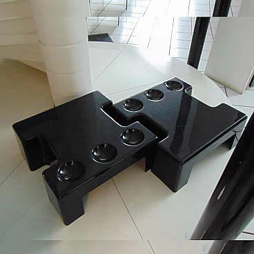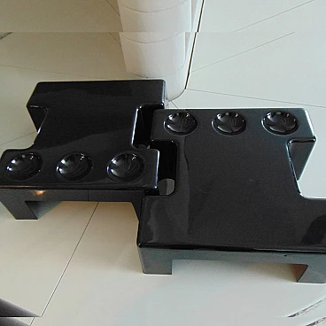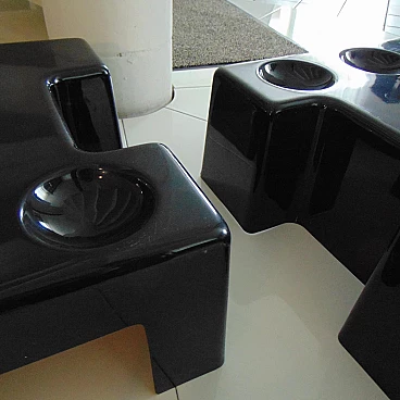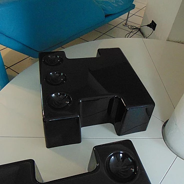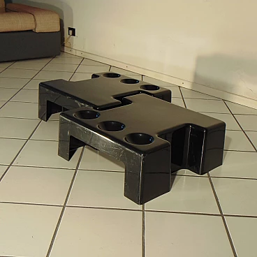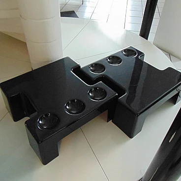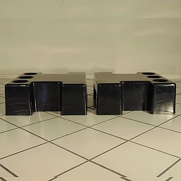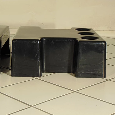 Pair of stackable and combinable tables in glossy black thermoformed plastic, Sormani, 1972