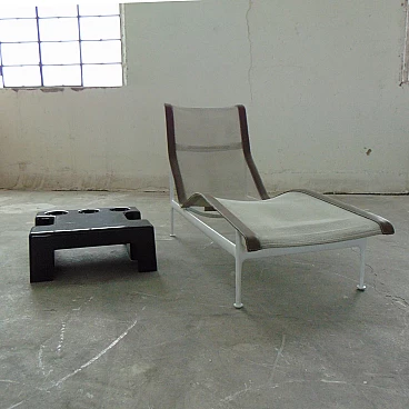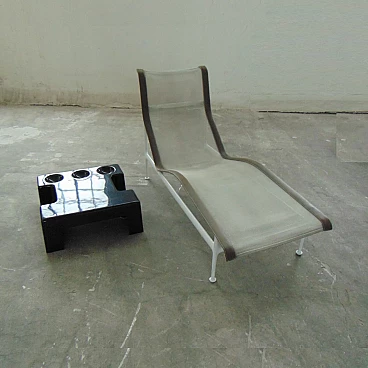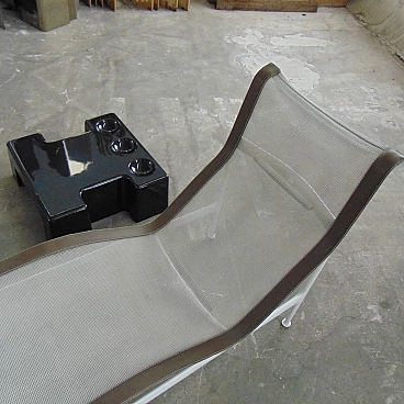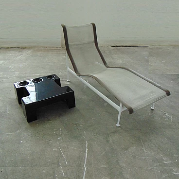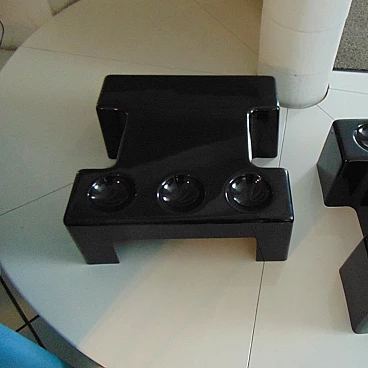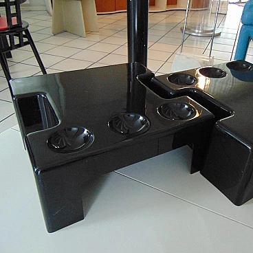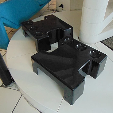 Two nice cocktail tables for indoor and outdoor use in glossy black, which can be combined at will and with, each, three trays for cocktail appetizers. An idea of Studio D.A., a group of designers active in the seventies with Sormani, for the production of avant-garde furniture and accessories in thermoformed plastic.