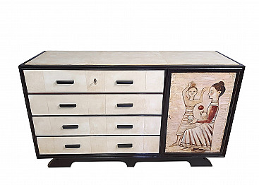 Chest of drawers with mirror in Gio Ponti style, 1950s