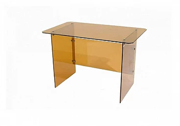 Desk in yellow smoked glass and brass with rounded corners. Production GALLOTTI E RADICE.