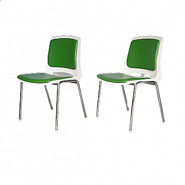 Bendt Winge, a set of six chairs, Norway, 1970s. Plastic and steel tubes and green leather. Stackable. Sold in pairs only. 3 Pairs available.