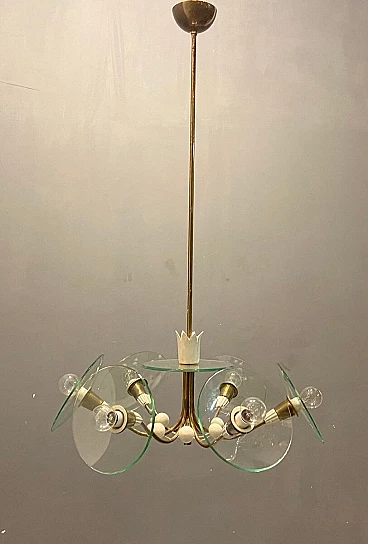 Chandelier in brass and glass by Pietro Chiesa for Fontana Arte, 40s