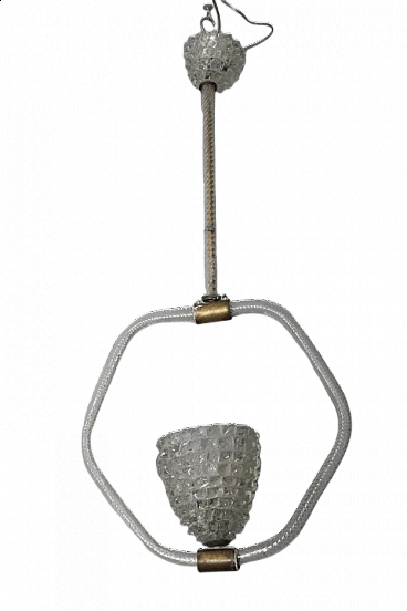 Antique Murano chandelier with glass Rostrato, typical manufacturing Ercole Barovier, made in the period Art Deco 1940 in glass and brass. Excellent condition revised. Ready to hang one light, ideal for a bathroom or hallway. Measures: height cm 90 width cm 45