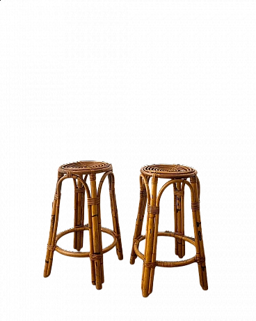 Pair of bamboo stools from the 60s. Dimensions: height 65 cm, seat diameter 33 cm.