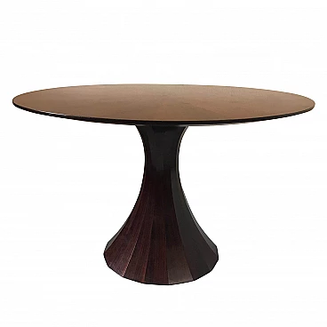 Round Wooden table by L. Massoni, Carlo De Carli, with multi faced central leg, 50s