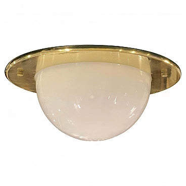A lovely brass and opaline glass ceiling light made in Italy, brass and glass are in perfect conditions, it works 110-240 volts and needs regular e14 bulb.