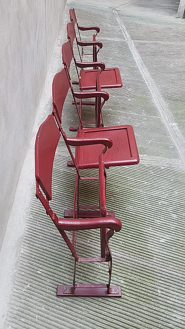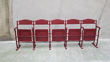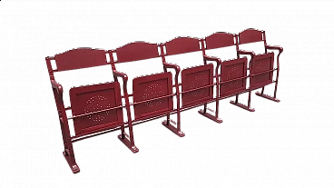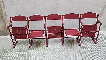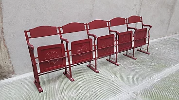 Wooden cinema bench from the 30s, restored and repainted. Used in the entrance of a house or in a waiting room. Seat height 45cm.