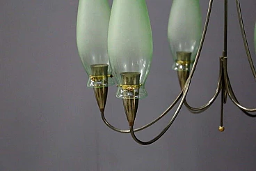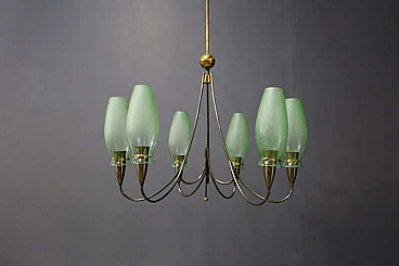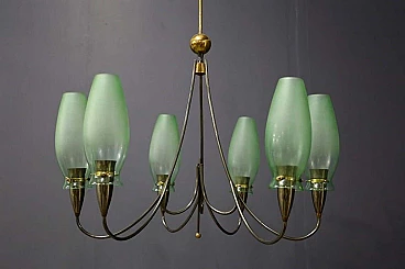 6 light brass and Murano glass chandelier, 1950s