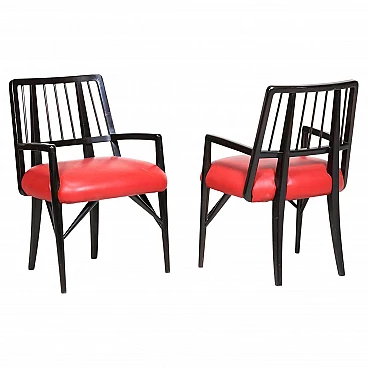 4 Chairs by Paul Laszlo in black lacquered wood, 1950s