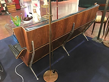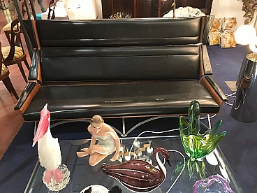 Mid-century Miller style sofa in wood and black faux leather, Italy, 1960s