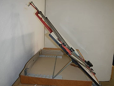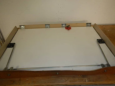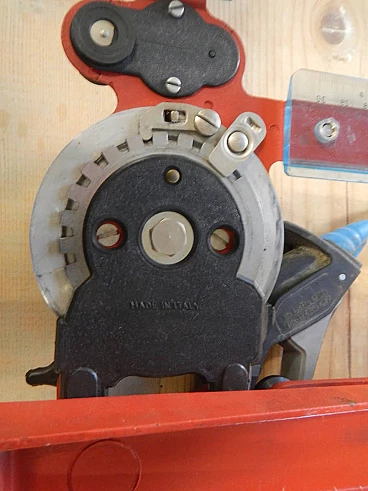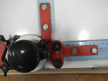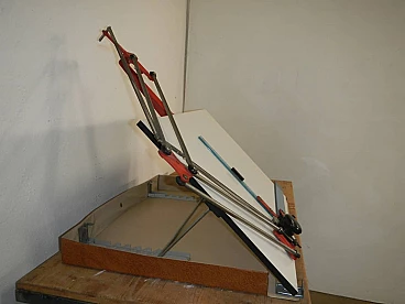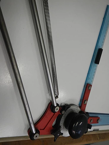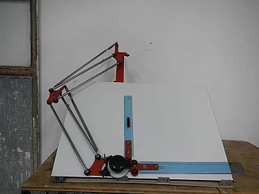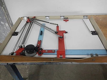 Tecnostyl professional portable graph with case. Work surface 50x70 cm. Original red coloured iron supports and plastic rulers. In good condition. Worn case and missing cover