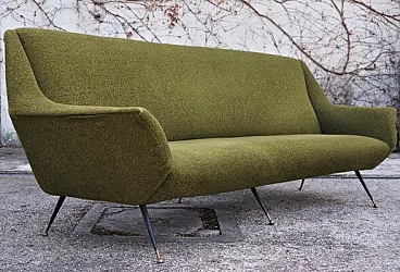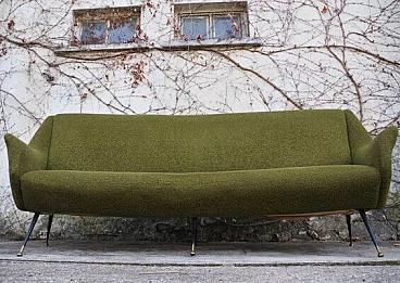 Green cotton and wool curved sofa by Gigi Radice for Minotti, 1950s