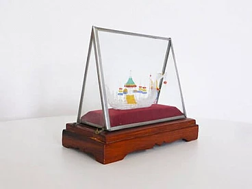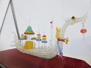 Glass case with handmade Chinese Viking ship, 1960s