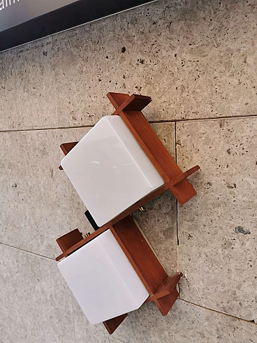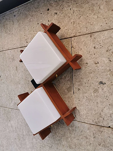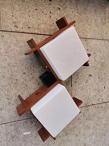 Sconces Midcentury angelo brotto for Esperia, Teak Opal Plexiglass Brass, Italy