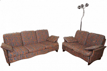 Sofas with walnut structure, 1970s. H80 x W70 x D91 - H80 x W133 x D91. Seat height: 43cm. Light wear consistent with age and use.