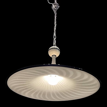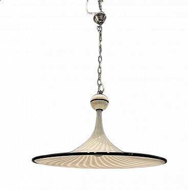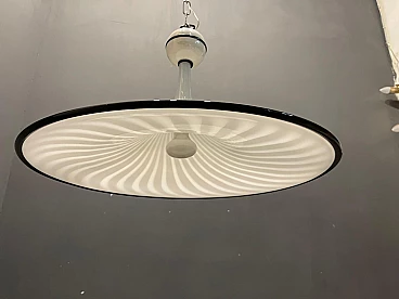 Large Murano glass pendant lamp by Venini. Hand-blown Murano glass with a black Murano glass border. Requires E27 1 bulb New wiring installed compatible with UK Europe USA Diameter 62 cm Height without chain and canopy 50 cm Height with chain and canopy 115 cm