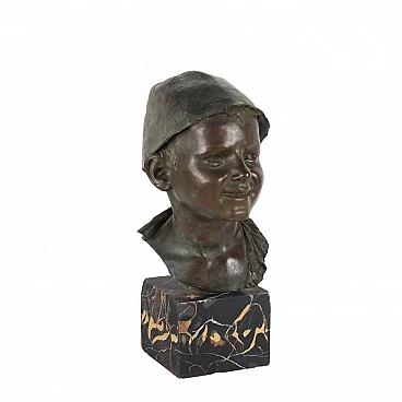 Giovanni De Martino, bust of boy, bronze on black marble base, early 900s