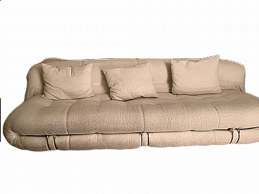 Large Soriana three-seater sofa by Afra & Tobia Scarpa for Cassina, Italy 1969. This is the largest sofa in the 'Soriana' range. The sofa is upholstered in a beautiful white washable wool bouclé style fabric. The original foam is in perfect condition and shows its characteristic round and voluminous shape. The concept behind the Soriana series was to express a comfortable design in which a bundle of fabric or leather was held together by chrome-plated metal clamps. The Soriana series won the Compasso d'Oro award in 1970. A very comfortable sofa in a very good condition.