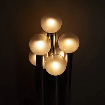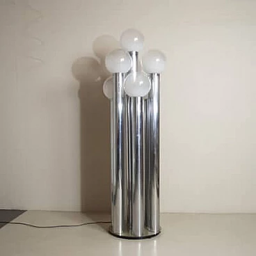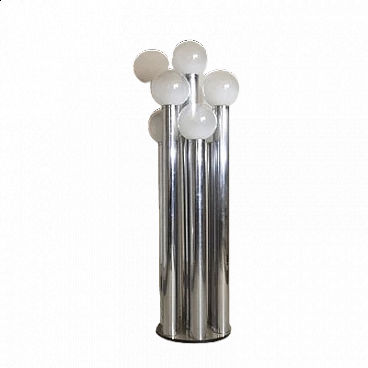 Floor lamp by Goffredo Reggiani, 1970s in steel and opaline glass. This piece is attributed to the aforementioned designer / manufacturer. It has no attribution mark. The cable for this item may be genuine and may need to be replaced unless otherwise noted.