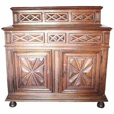 Ancient walnut sideboard of the high Piedmontese Baroque period, 17th century