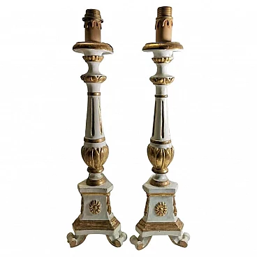 Pair of carved and gilded wooden altar candlesticks, 18th century