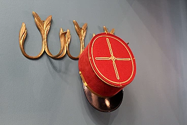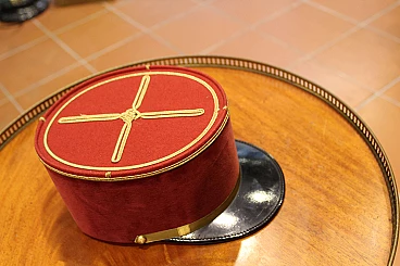 Red velvet French Gendarmerie hat made for the theatre, 60s