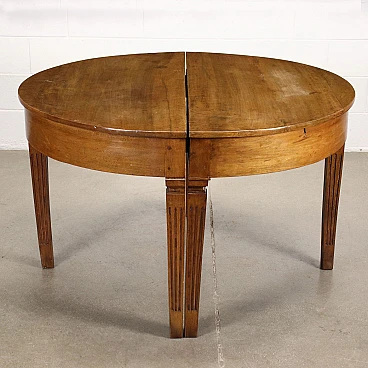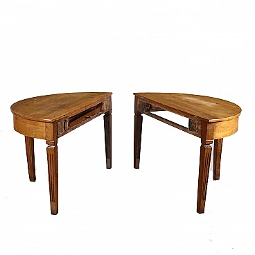 Pair of Directoire walnut half-moon consoles, late 18th century