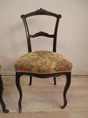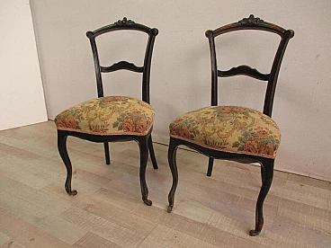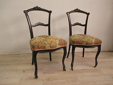 Pair of Umbertine chairs with casters in ebonised solid walnut and Gobelin fabric, 19th century
