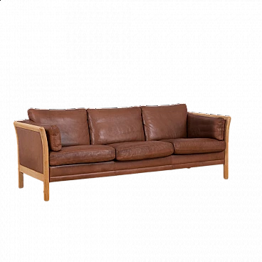 Brown leather 3-seater sofa by Mogens Hansen, 1970s