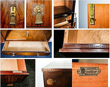 The 2nd drawer features the manufacturers brass plaque, serial number plate and "Waring & Gillow LTD" engraved on the edge. The rear also features the serial number.