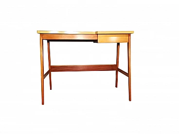 Writing desk with yellow ant floor and beech wood structure, restored, 1950s.