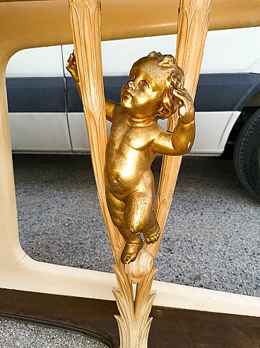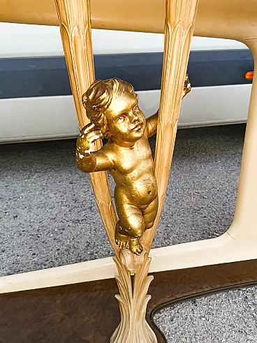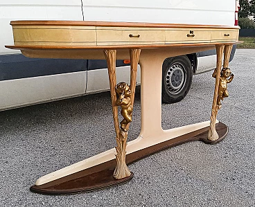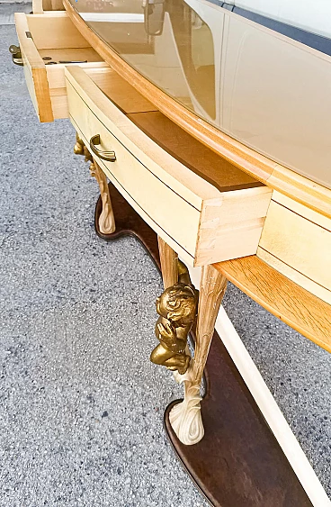 Console in wood and parchment with glass top and brass decorations by Associazione Artigiani Canturini del mobile, 50s