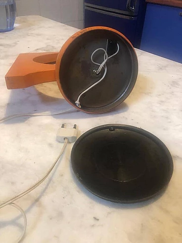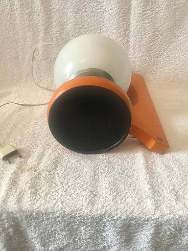 Stunning, table lamp in lacquered wood in shades of orange, with white opaline glass sphere. Italy 1960. The lamp is original in all its parts and is functional and serviced and ready to be used in your home. European socket (up to 250V). One light bulb socket inside.