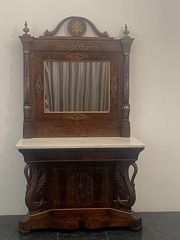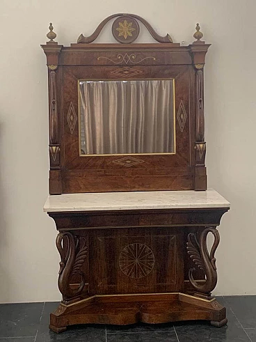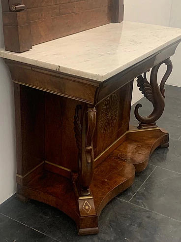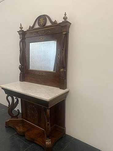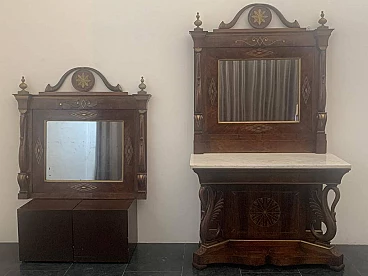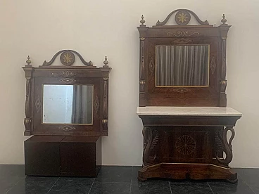 Console table with mirror and fireplace mirror in walnut, late 18th century