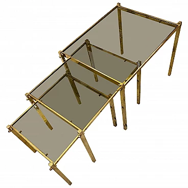 Set of three solid brass coffee tables made in Italy in the 1960s in excellent condition.