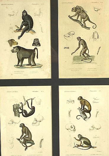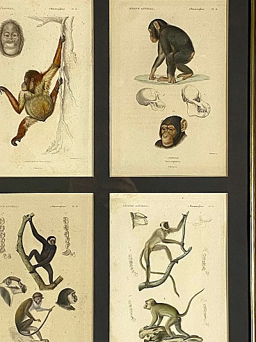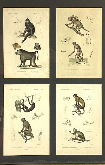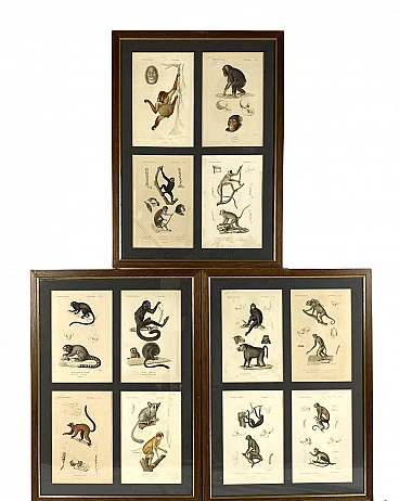 3 Framed panels with 12 engravings from "Le Règne Animal" Georges Cuvier, 19th century