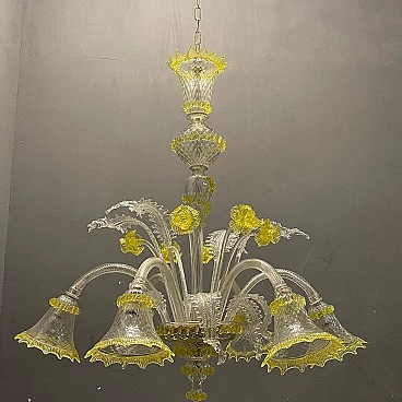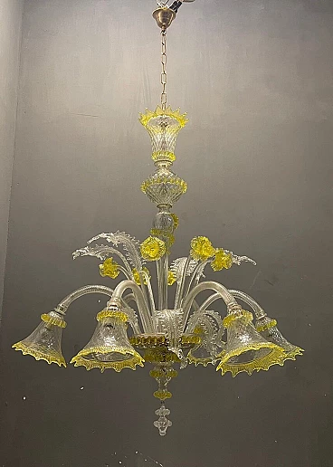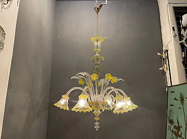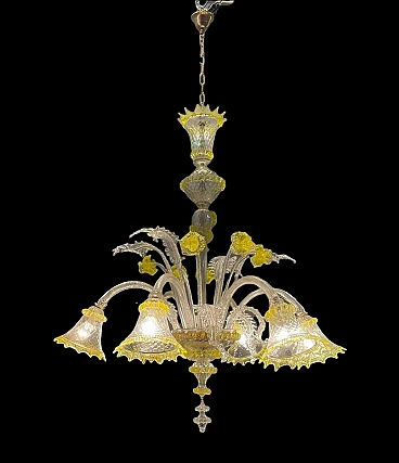 Large floral chandelier in Murano glass 1960. Mouth-blown Venetian glass. 6 lights Requires E14 bulbs New wiring installed compatible with UK, USA, Europe. Height with chain and canopy 150 cm Height without chain and canopy 106 cm Width 95 cm