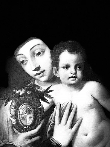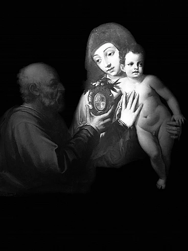 Painting Holy Family with coat of arms in the manner of Tiziano Vecellio, 16th century