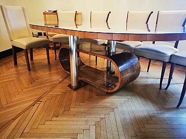 Art Deco table in walnut root, crystal and steel, 1930s