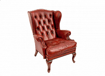Bergere Chesterfield burgundy leather armchair, 1960s